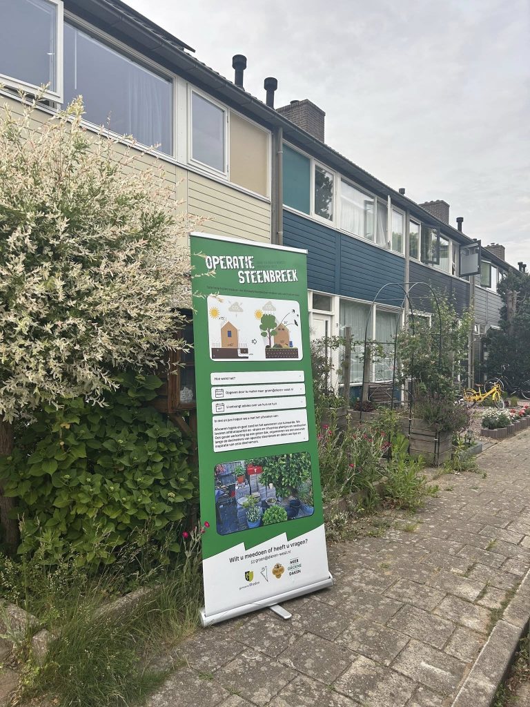 Operatie Steenbreek Dieren-West helpt bewoners om hun tuin en dak natuur- en klimaatvriendelijker te maken. Door tegels te vervangen door groen groeit de biodiversiteit en wordt de wijk beter bestand tegen extreme regen en hitte.